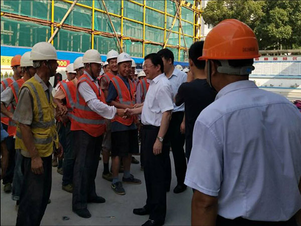 在施工現(xiàn)場,顧縣長看望了在高溫酷暑下作業(yè)的一線施工人員,親切和工人們握手,送上防暑降溫用品,對職工們的辛勤勞動(dòng)表示由衷地感謝,并再三叮囑工人們在高溫天氣要注意身體,合理安排作息時(shí)間,切實(shí)做好防暑降溫和安全生產(chǎn)工作。