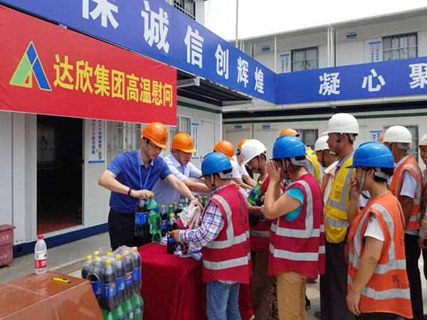 在項目部,集團公司領導將人丹、花露水、雪碧等防暑降溫用品發(fā)放給每一位職工,同時叮囑大家夏季高溫作業(yè)時,注意防暑降溫。另外,員工養(yǎng)成良好的生活衛(wèi)生習慣,不疲勞上崗、不帶不良情緒上崗,以良好的精神狀態(tài)上好班。