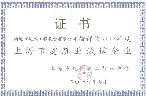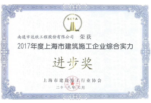 此外,公司還被評為2017年度上海市建筑施工企業(yè)綜合實(shí)力進(jìn)步獎稱號。