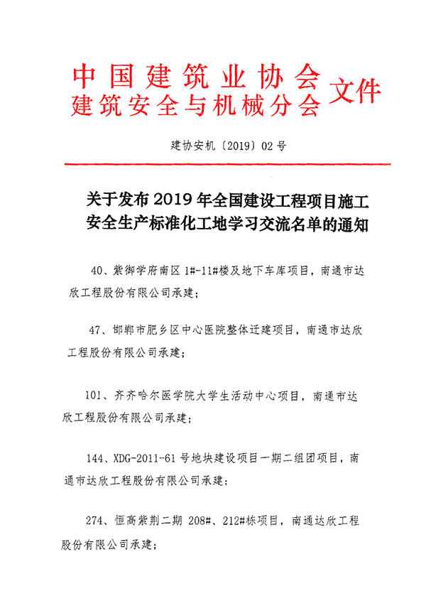 “全國建設工程項目施工安全生產標準化工地”由中國建筑協會建筑安全分會在全國范圍內組織開展的大型評選活動,是國家建設部批準的全國范圍內建筑安全文明施工領域的最高獎項,旨在規(guī)范施工安全生產工作,保障建筑職工生命安全與健康。此項殊榮的獲得,將進一步提高了集團項目的標準化管理水平,營造良好的安全生產氛圍,為提升企業(yè)形象、促進企業(yè)長遠發(fā)展奠定堅實的品牌基礎。