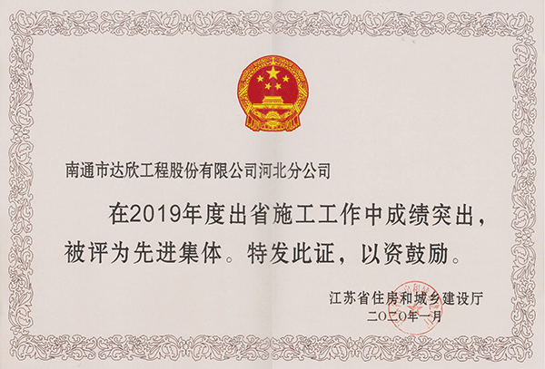 日前,從江蘇省住房和城鄉(xiāng)建設(shè)廳駐天津辦事處傳來捷報,我司第四、六工程公司被評為“2019年度江蘇出省施工先進集體”,第四、六黨支部被評為“2019年度江蘇進津冀施工優(yōu)秀黨組織”,陳仁富、楊靜、徐仁忠同志被評為“2019年度江蘇進津冀施工先進企業(yè)經(jīng)理”,謝廣財同志被評為“2019年度江蘇進津冀施工優(yōu)秀黨務(wù)工作者”,楊靜、傅海榮、陳正進同志被評為“2019年度江蘇進津冀施工優(yōu)秀共產(chǎn)黨員”,崔恒俊、謝存宏、曹為華、游慶兵、周小兵同志被評為“2019年度江蘇進津冀施工優(yōu)秀建造師”,徐培華、謝兆波、束長春、周興穩(wěn)同志被評為“2019年度江蘇出省建筑施工先進個人”。