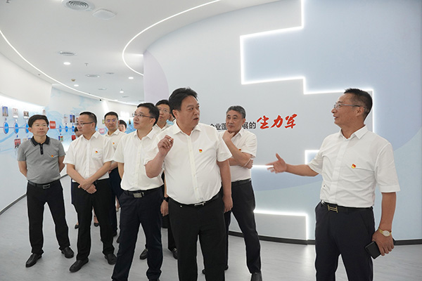 于立忠一行參觀了“征途如虹”企業(yè)印記,“初心如炬”黨建云庫,“教誨如風(fēng)”達欣講堂,“使命如山”先鋒服務(wù)站,“追夢如潮”職工書屋,“群團如影”風(fēng)采展示等七個版塊和書記工作室。于立忠指出,達欣黨建主題館,全方位展現(xiàn)了企業(yè)黨建成果和發(fā)展成就,形式生動,內(nèi)涵豐富、詳實。于立忠強調(diào),抓好非公企業(yè)黨建始終是促進非公經(jīng)濟發(fā)展健康發(fā)展的核心舉措,“高質(zhì)量黨建引領(lǐng)企業(yè)高質(zhì)量發(fā)展”在達欣得到生動的實踐。于立忠希望,達欣集團要不斷完善優(yōu)化主題館內(nèi)容,切實將黨建主題館打造為黨員、團員青年、職工群眾學(xué)習(xí)黨的創(chuàng)新理論、傳承勞模工匠精神的新平臺,并作為記錄達欣黨建工作與企業(yè)同步發(fā)展的重要載體。要繼續(xù)堅持“圍繞發(fā)展抓黨建,抓好黨建促發(fā)展”的理念,不斷豐富黨建品牌內(nèi)涵,為海安非公企業(yè)黨建樹立榜樣典型,為海安發(fā)展作出新的更大貢獻。