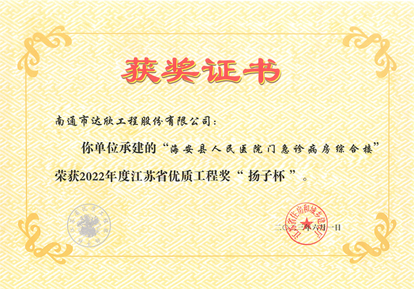 近日,江蘇省住房和城鄉(xiāng)建設廳公布了2022年度江蘇省優(yōu)質(zhì)工程獎“揚子杯”獲獎名單,第一工程公司承建的海安市人民醫(yī)院門急診病房綜合樓項目榜上有名。
