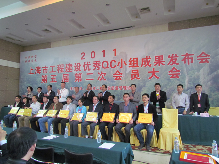 4月17日上海市工程建設(shè)質(zhì)量管理協(xié)會召開2011年建設(shè)工程優(yōu)秀QC小組活動成果發(fā)布會暨第五屆第二次會員大會。第一工程公司選送的 “攻克3m厚大體積砼底板裂縫”、“提高施工現(xiàn)場安全達標優(yōu)良率”、“推行‘四節(jié)一環(huán)?!行Ы档凸こ坛杀尽?、“提高建筑幕墻工程的施工質(zhì)量”、“有效控制填充墻內(nèi)混凝土構(gòu)造柱裂縫”、“有效控制斜屋面混凝土施工質(zhì)量”、“提高YTONG砂加氣砼砌塊砌筑合格率”、“有效提高模板工程施工質(zhì)量”、“降低明珠城三期工程鋼筋損耗”等九項QC成果均參加本次活動的發(fā)布與交流。這次江蘇省在滬企業(yè)參加QC成果發(fā)布、交流共83篇,我公司就占據(jù)其中的14%,得到了駐滬辦領(lǐng)導(dǎo)的充分肯定。工程公司也被上海市工程建設(shè)質(zhì)量管理協(xié)會評為2011年上海市建設(shè)質(zhì)量管理小組活動優(yōu)秀企業(yè)。