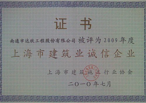 達(dá)欣股份首次挺進(jìn)進(jìn)滬施工企業(yè)前30強(qiáng)(進(jìn)滬施工的江蘇企業(yè)僅有八家),這標(biāo)志著公司跨入了進(jìn)滬強(qiáng)企的第一方陣,標(biāo)志著公司進(jìn)滬施工進(jìn)入了新階段!同時(shí)公司還再次榮獲了“上海市建筑業(yè)誠信企業(yè)”稱號。上海市的主流媒體“解放日報(bào)”、行業(yè)報(bào)刊“建筑時(shí)報(bào)”均予以報(bào)導(dǎo)。