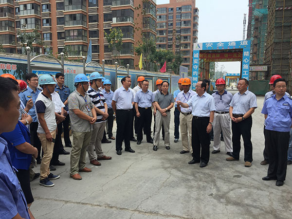 8月27日上午,宿遷市副市長李榮錦率市住建局主要負責人及宿遷市10余家建設單位、監(jiān)理單位、施工單位負責人蒞臨第一工程公司承建的星月城二期進行參觀考察,這是李榮錦副市長繼8月18日檢查指導后第二次來我項目,重點推介項目揚塵噴水設備系統(tǒng)控制做法及現(xiàn)場安全文明標準化施工特色。