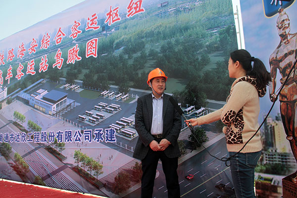 在開(kāi)工儀式后,馬董事長(zhǎng)現(xiàn)場(chǎng)接受了海安電視臺(tái)的采訪(fǎng),代表公司向全縣人民承諾,要把本項(xiàng)目作為公司的重點(diǎn)工程、形象工程展示給全縣人民,做到抓質(zhì)量精益求精,抓進(jìn)度一絲不茍,抓安全防微杜漸,以一流的素質(zhì),一流的服務(wù),一流的技術(shù),打造出優(yōu)質(zhì)的精品工程回饋家鄉(xiāng)人民。